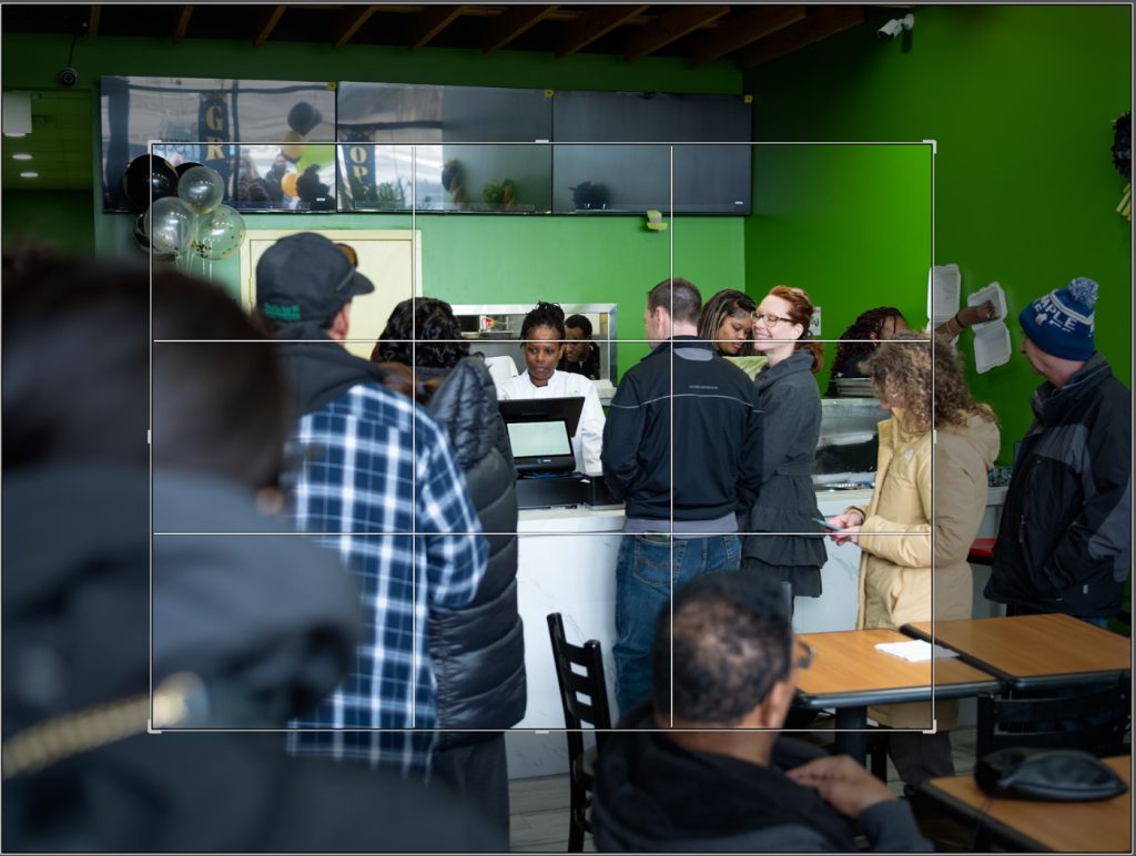If you’re just learning about shot composition and its relationship to storytelling, really understand this comparison. Scroll back up and compare the 2 photos again. Which one makes you want to try Andrea’s food more? Five people holding up the certificate? Or a crush of people all huddled together in celebration of Andrea’s achievement?