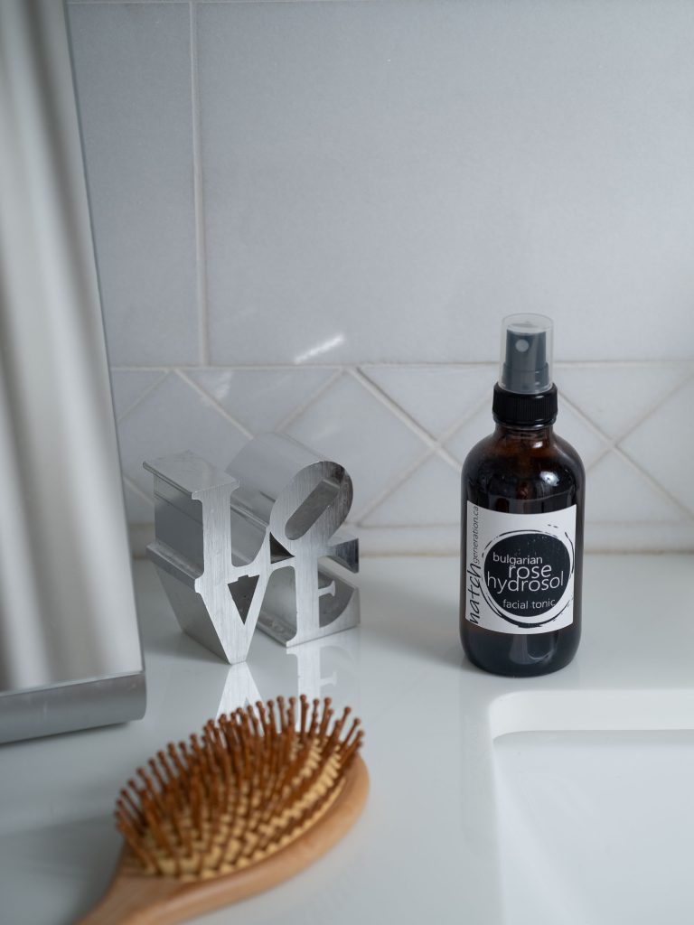 Since Shawna creates handmade health and beauty products, the obvious place to start is in the bathroom. All of the photos here were shot with just one strobe flash, in front and above at a 45 degree angle, through an umbrella modifier.